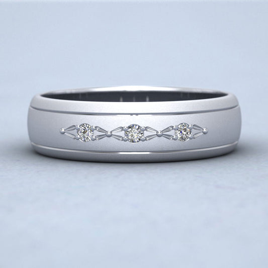 Three Diamond Set 500 Palladium 6mm Wedding Ring With Lines