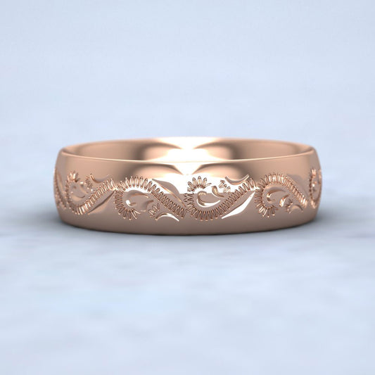 Engraved Court Shape 18ct Rose Gold 6mm Wedding Ring