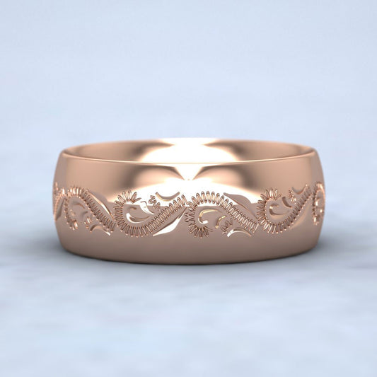 Engraved Court Shape 18ct Rose Gold 8mm Wedding Ring