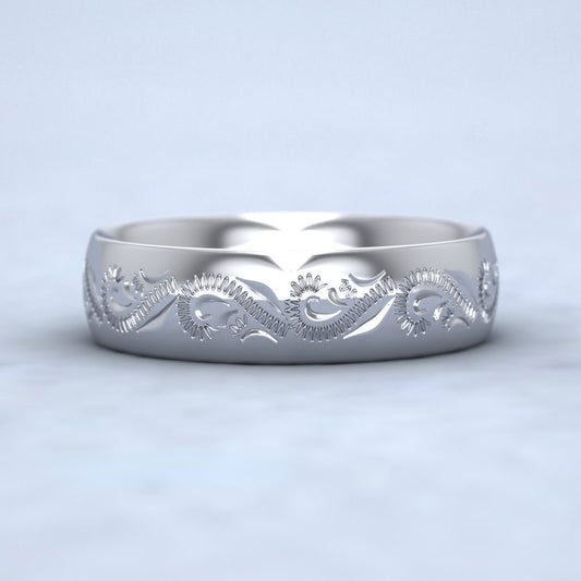 Engraved Court Shape 18ct White Gold 6mm Wedding Ring