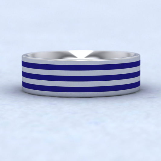 Blue Enamelled Block 18ct White Gold 6mm Wedding Ring