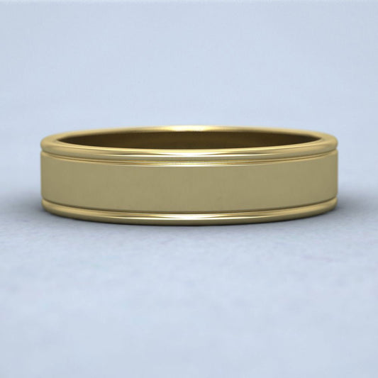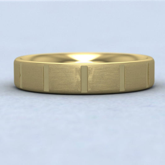 Rounded Edge Grooved Pattern Flat 18ct Yellow Gold 5mm Flat Wedding Ring