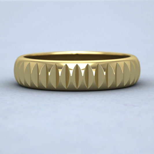Rounded Edge Grooved Pattern Flat 14ct Yellow Gold 5mm Flat Wedding Ring