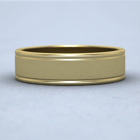 Rounded Edge Grooved Pattern Flat 9ct Yellow Gold 6mm Flat Wedding Ring