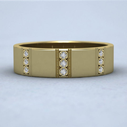 Three Diagonal Diamond Set 14ct Yellow Gold 6mm Wedding Ring