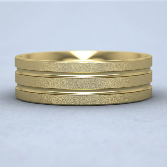 Double Groove Pattern 18ct Yellow Gold 7mm Wedding Ring