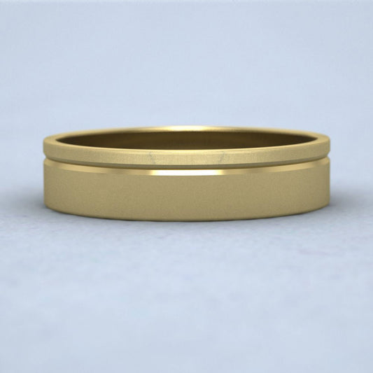 Asymmetric Line Pattern 14ct Yellow Gold 5mm Flat Wedding Ring