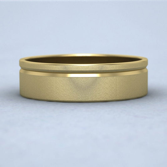 Asymmetric Line Pattern 18ct Yellow Gold 6mm Flat Wedding Ring