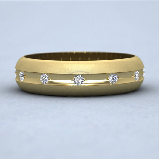 Wedding Ring With Concave Groove Set With Twelve Diamonds 6mm Wide In 14ct Yellow Gold