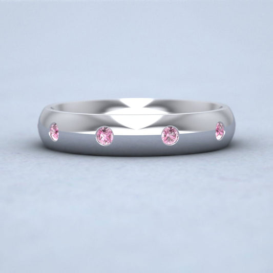 Ten Pink Sapphire Set Flush 500 Palladium 4mm Wedding Ring