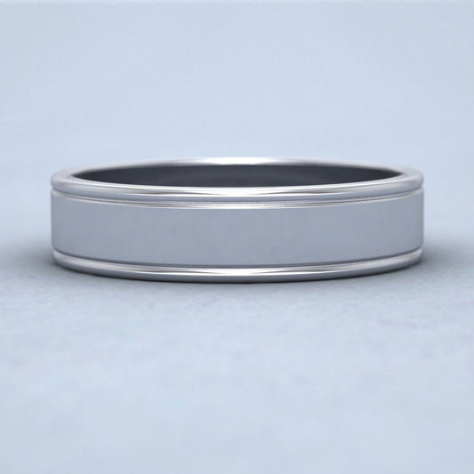 Flat Central Grooved 9ct White Gold 5mm Flat Wedding Ring