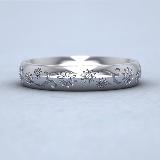 Daisy Pattern 14ct White Gold 4mm Wedding Ring