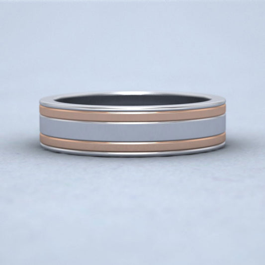 Two Colour Flush Double Line 950 Platinum And 18ct Rose Gold 5mm Wedding Ring