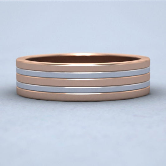 Two Colour Flush Double Line 18ct Rose And White Gold 5mm Wedding Ring