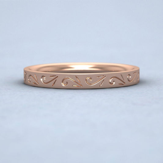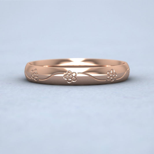 Engraved Flower 18ct Rose Gold 3mm Wedding Ring
