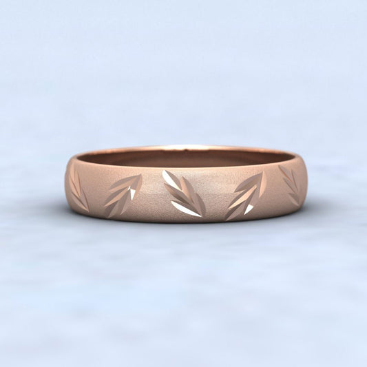 Cut Leaf Across Pattern 9ct Rose Gold 5mm Wedding Ring