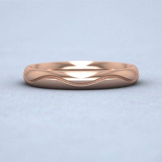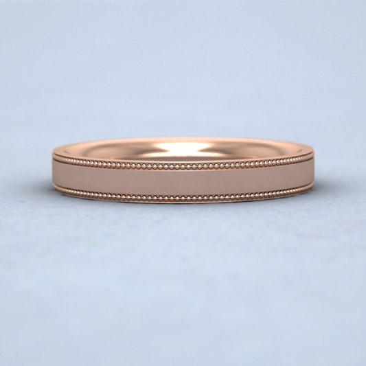 Millgrain Edge 18ct Rose Gold 3mm Flat Comfort Fit Wedding Ring