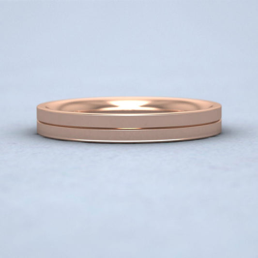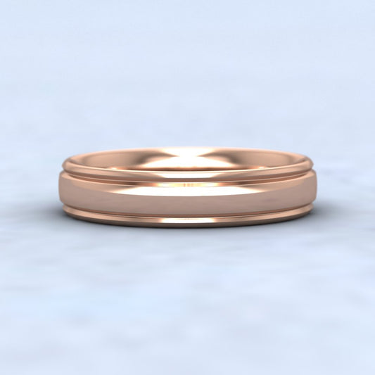 Bullnose Groove Pattern Flat 18ct Rose Gold 4mm Flat Wedding Ring