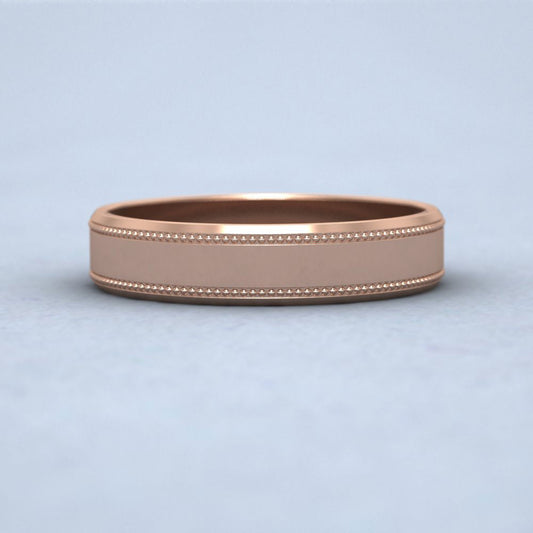 Bevelled Edge And Millgrain Pattern 18ct Rose Gold 4mm Flat Wedding Ring