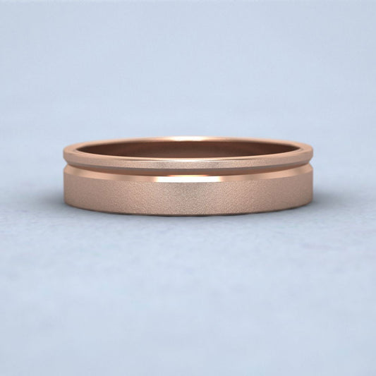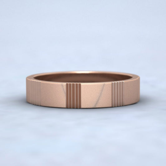 Grooved Pattern 18ct Rose Gold 4mm Flat Wedding Ring