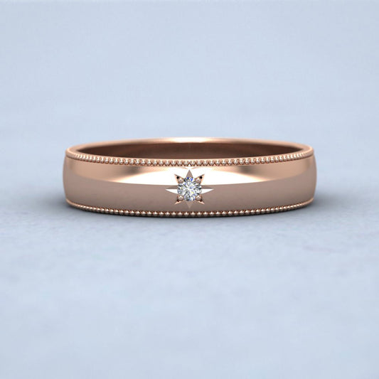 Millgrained Edge And Single Star Diamond Set 18ct Rose Gold 4mm Wedding Ring