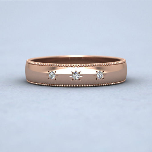 Millgrained Edge And Three Star Diamond Set 18ct Rose Gold 4mm Wedding Ring