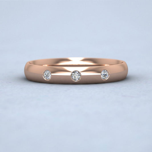 Three Diamond Flush Set 18ct Rose Gold 3mm Wedding Ring