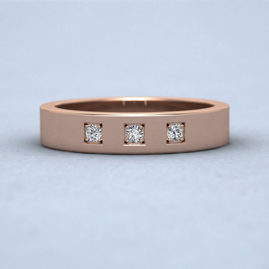 Three Diamonds With Square Setting 18ct Rose Gold 4mm Wedding Ring