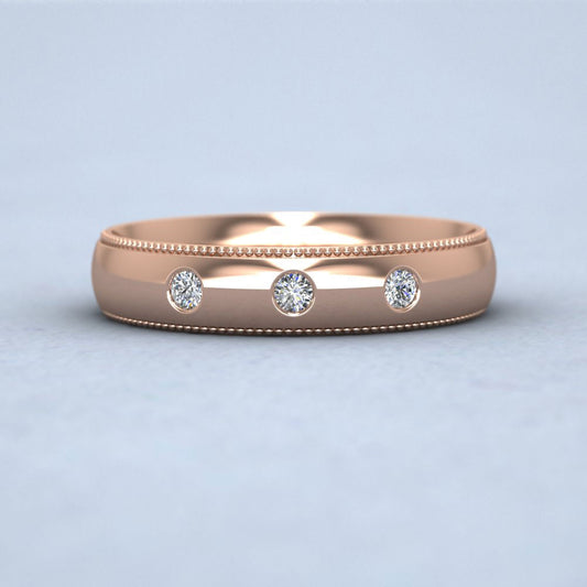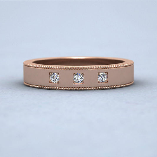 Three Diamonds With Square Setting 18ct Rose Gold 4mm Wedding Ring With Millgrain Edge