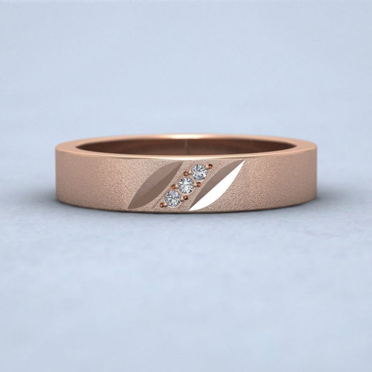 Diagonal Cut And Diamond Set 18ct Rose Gold 4mm Flat Wedding Ring