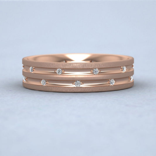 Three Diagonal Diamond Set 18ct Rose Gold 6mm Wedding Ring