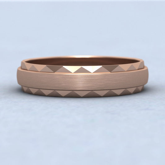 Flat Edge Facetted Cut Patterned And Matt Finish 18ct Rose Gold 5mm Wedding Ring