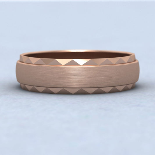 Flat Edge Facetted Cut Patterned And Matt Finish 18ct Rose Gold 6mm Wedding Ring