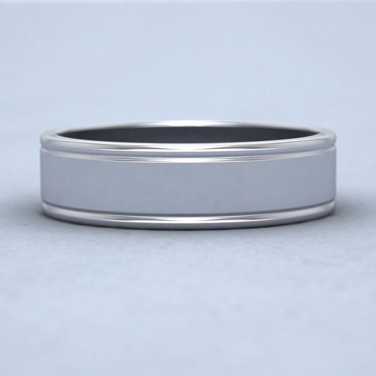 Rounded Edge Grooved Pattern Flat Sterling Silver 6mm Flat Wedding Ring