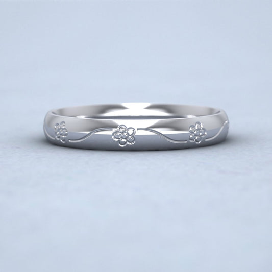 Engraved Flower Sterling Silver 3mm Wedding Ring