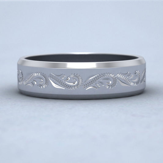 Engraved Sterling Silver 6mm Flat Wedding Ring With Bevelled Edge