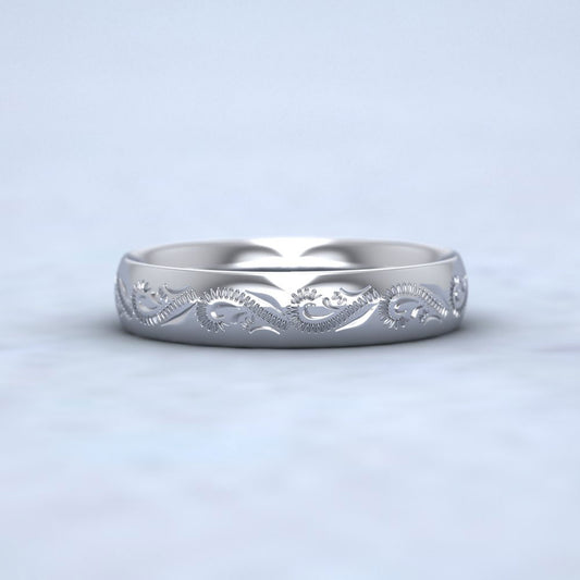 Engraved Court Shape Sterling Silver 4mm Wedding Ring
