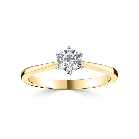 18ct Yellow Gold Six Claw Solitaire Diamond Engagement Ring