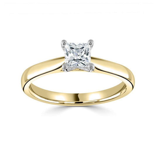 18ct Yellow Gold And Platinum Square Princess Cut Four Claw Diamond Ring