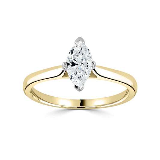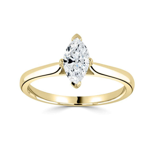18ct Yellow Gold Marquise Cut Four Claw Solitaire Diamond Ring