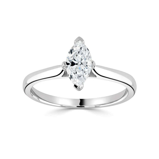 Platinum Marquise Cut Four Claw Solitaire Diamond Ring