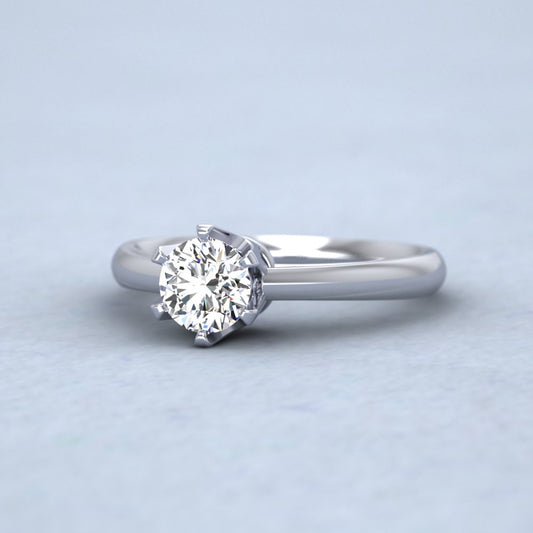 9ct White Gold Six Claw Solitaire Diamond Ring