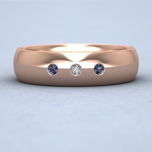 Blue Sapphire And Diamond Flush Set 18ct Rose Gold 6mm Wedding Ring