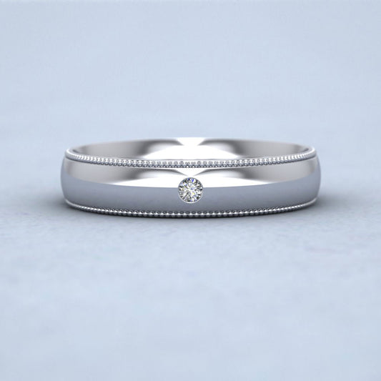 Single Flush Diamond Set And Millgrain Edge 14ct White Gold 4mm Wedding Ring