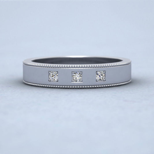 Three Diamond And Centre Millgrain Pattern 500 Palladium 4mm Wedding Ring