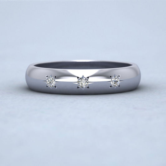 Three Star Diamond Set 500 Palladium 4mm Wedding Ring
