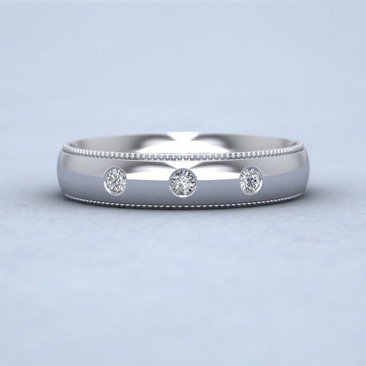 Three Diamonds With Square Setting 9ct White Gold 4mm Wedding Ring With Millgrain Edge