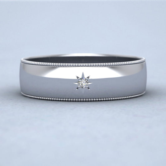 Millgrained Edge And Single Star Diamond Set 500 Palladium 6mm Wedding Ring