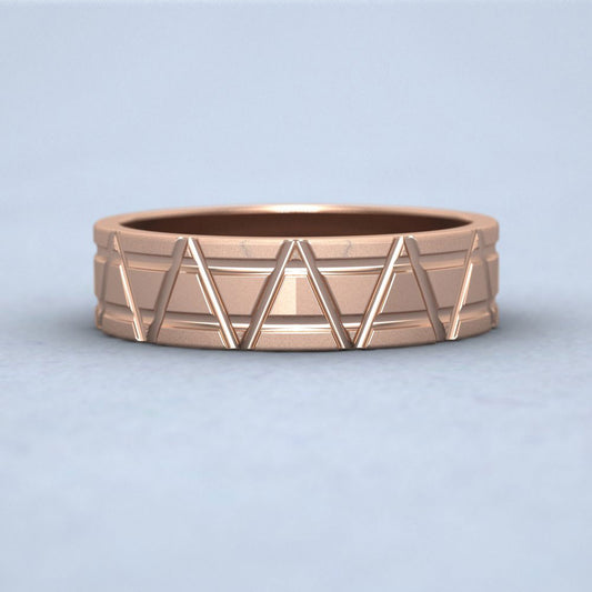 Zig Zag And Groove Pattern 9ct Rose Gold 5mm Flat Wedding Ring G