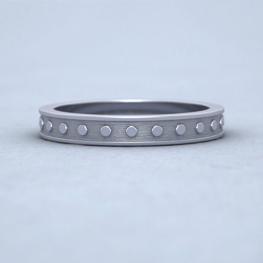 Raised Circle And Edge Patterned 9ct White Gold 3mm Wedding Ring